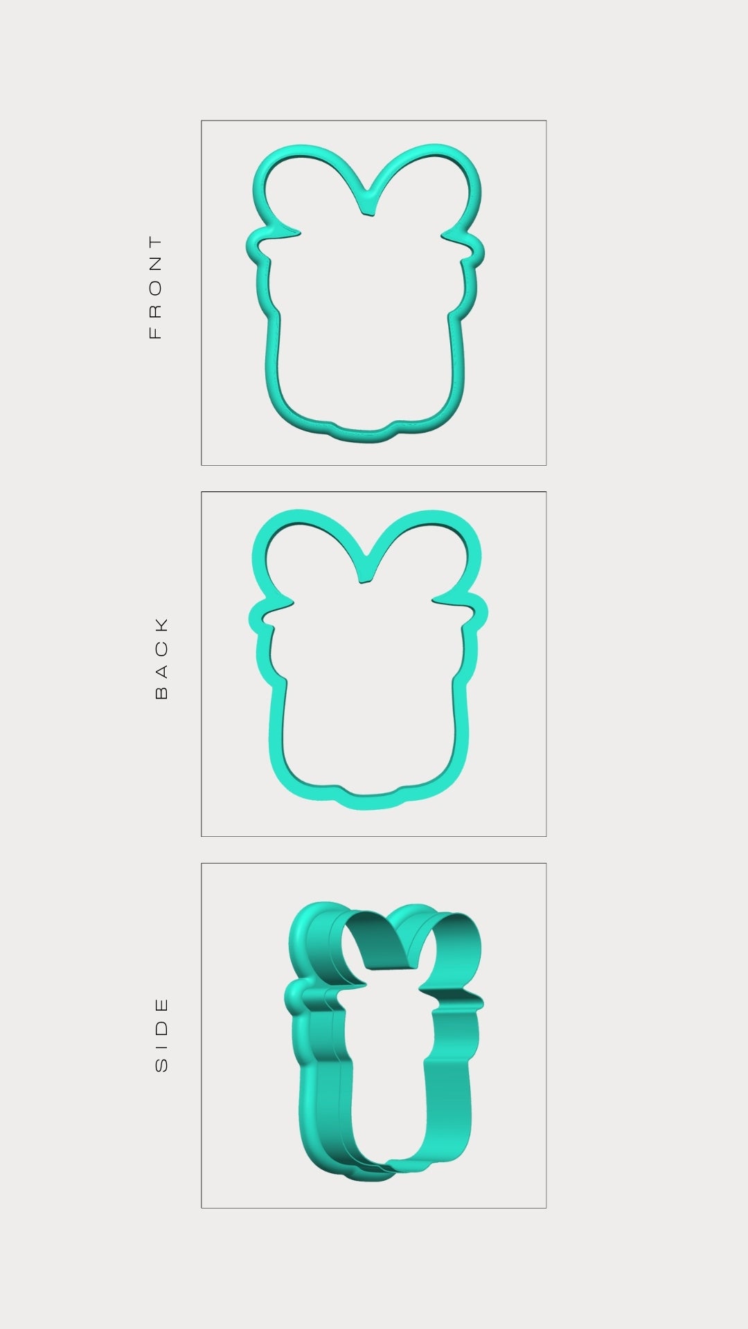 La forma del tagliabiscotti corrisponde esclusivamente alla sagoma esterna dell'immagine mostrata. Le linee interne presenti nel disegno servono solo come guida visiva per la decorazione e non sono presenti nel taglio vero e proprio del biscotto.
