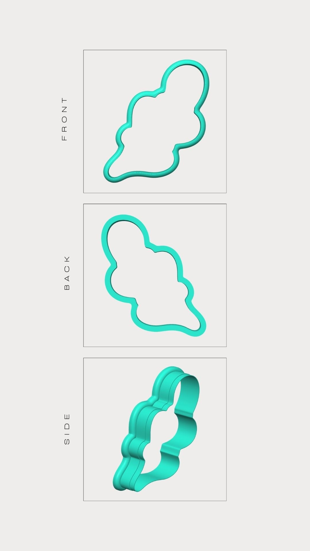 La forma del tagliabiscotti corrisponde esclusivamente alla sagoma esterna dell'immagine mostrata. Le linee interne presenti nel disegno servono solo come guida visiva per la decorazione e non sono presenti nel taglio vero e proprio del biscotto.