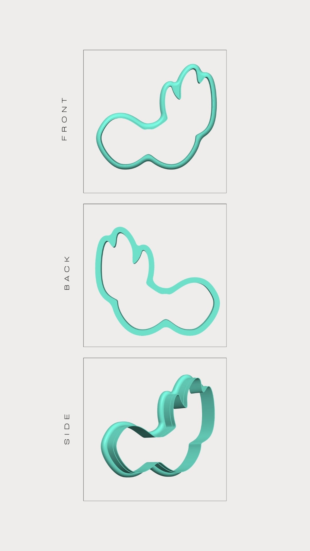 La forma del tagliabiscotti corrisponde esclusivamente alla sagoma esterna dell'immagine mostrata. Le linee interne presenti nel disegno servono solo come guida visiva per la decorazione e non sono presenti nel taglio vero e proprio del biscotto.