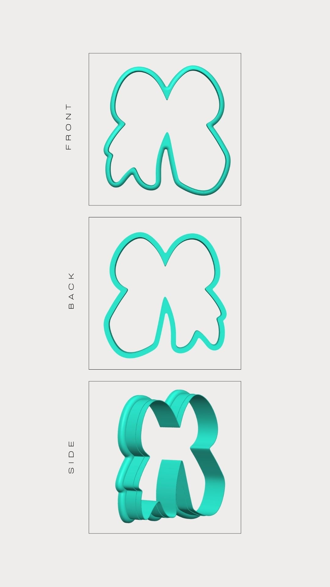 La forma del tagliabiscotti corrisponde esclusivamente alla sagoma esterna dell'immagine mostrata. Le linee interne presenti nel disegno servono solo come guida visiva per la decorazione e non sono presenti nel taglio vero e proprio del biscotto.
