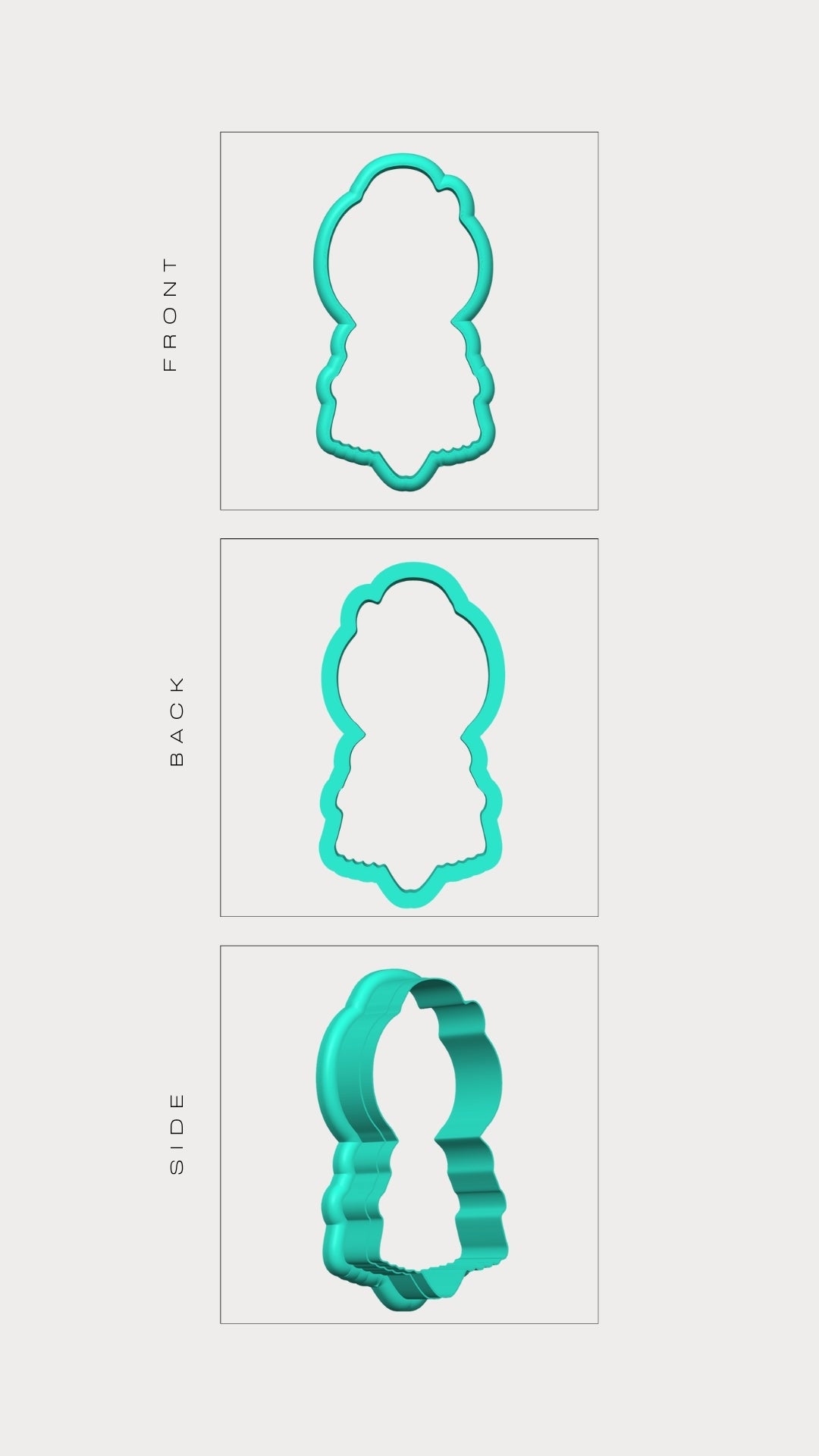 La forma del tagliabiscotti corrisponde esclusivamente alla sagoma esterna dell'immagine mostrata. Le linee interne presenti nel disegno servono solo come guida visiva per la decorazione e non sono presenti nel taglio vero e proprio del biscotto.