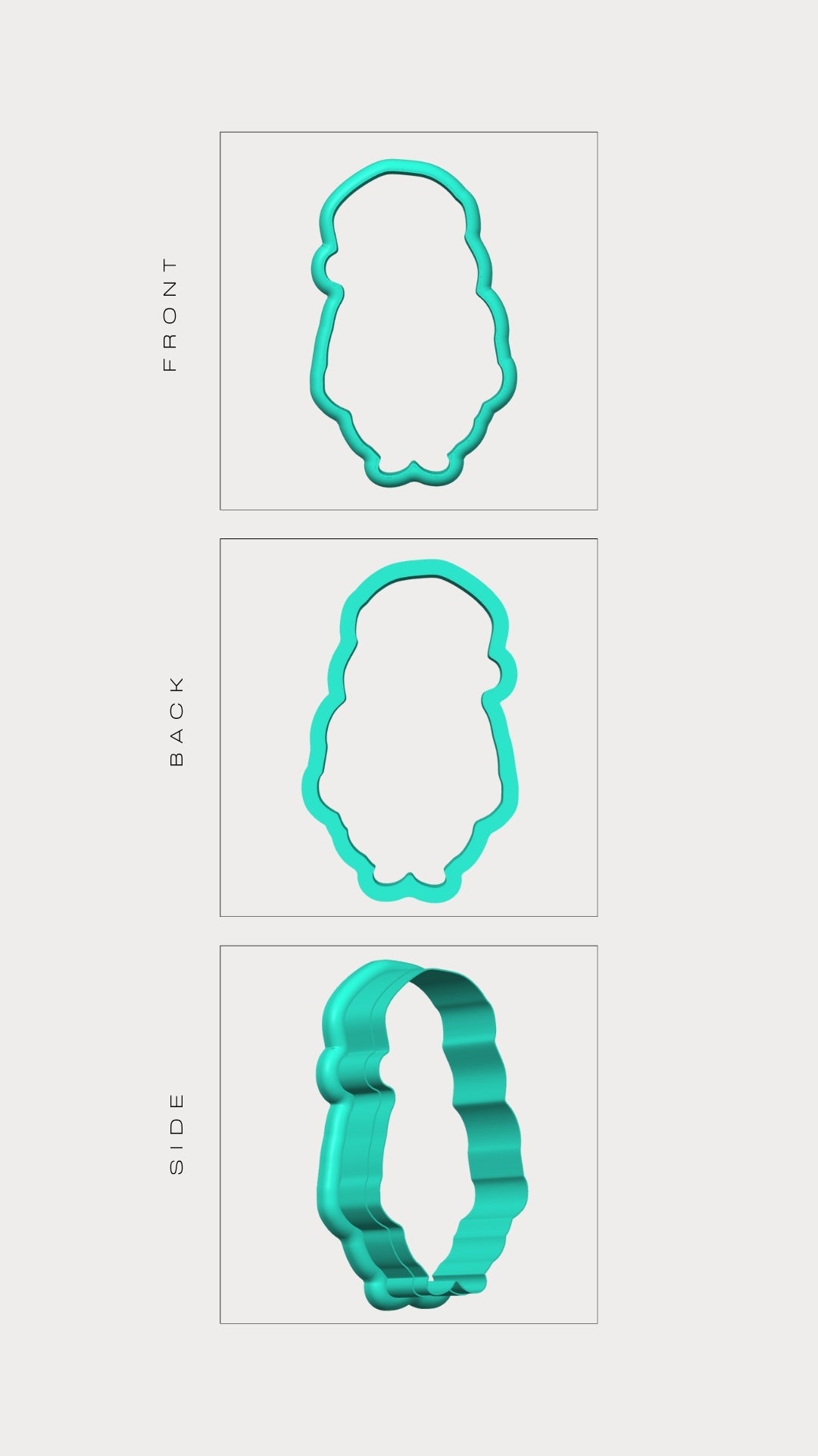 La forma del tagliabiscotti corrisponde esclusivamente alla sagoma esterna dell'immagine mostrata. Le linee interne presenti nel disegno servono solo come guida visiva per la decorazione e non sono presenti nel taglio vero e proprio del biscotto.
