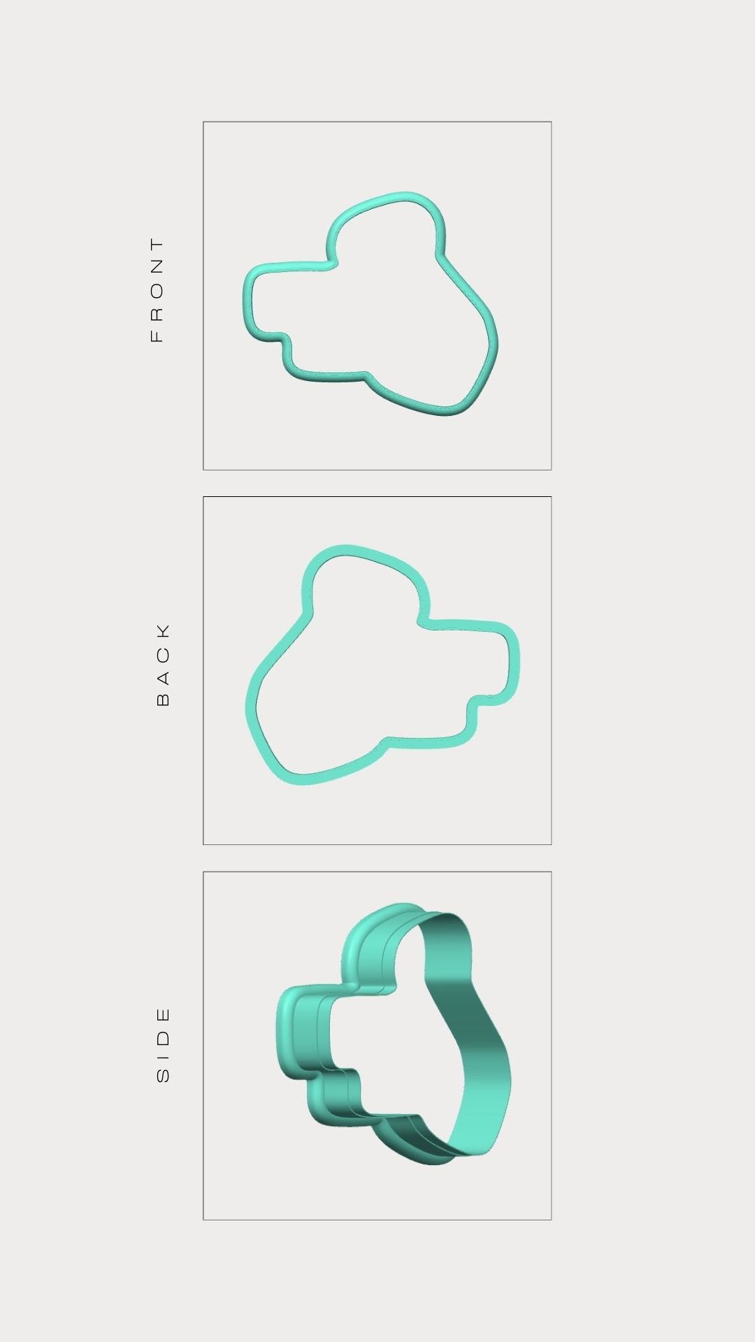 La forma del tagliabiscotti corrisponde esclusivamente alla sagoma esterna dell'immagine mostrata. Le linee interne presenti nel disegno servono solo come guida visiva per la decorazione e non sono presenti nel taglio vero e proprio del biscotto.